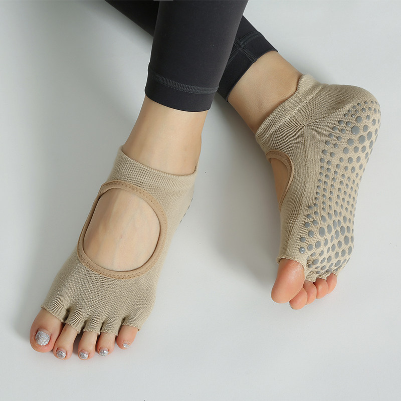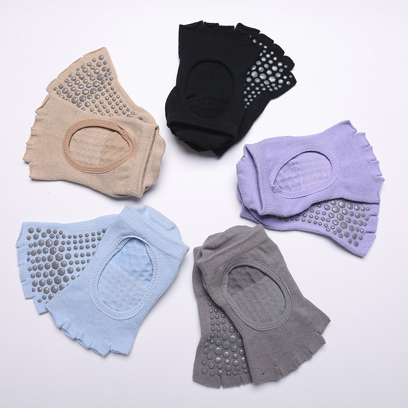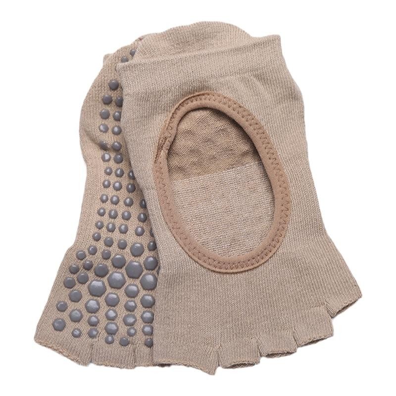 A non-slip sole construction helps provide grip on indoor floors and exercise mats, supporting steady footing during balance poses, transitions, and light workouts. The thin cotton fabric remains breathable and soft, making these socks suitable for warm conditions and extended indoor sessions.