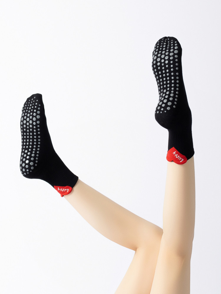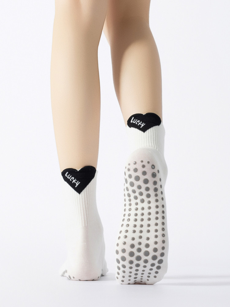 These short heart-accent yoga socks for women are designed for summer indoor activities, combining a playful contrast color design with a clean, lightweight structure. The subtle heart detail adds a cheerful visual element while keeping the overall look minimal and easy to style.