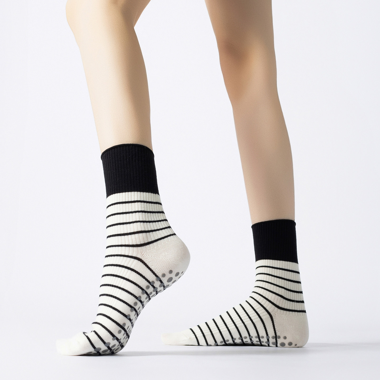 Ideal for customers searching for women’s yoga socks, striped fitness socks, non-slip pilates socks, summer indoor sports socks, contrast color workout socks, and floor exercise socks, this style emphasizes airflow, grip support, and modern design—making it a fresh option for summer activewear sock collections.