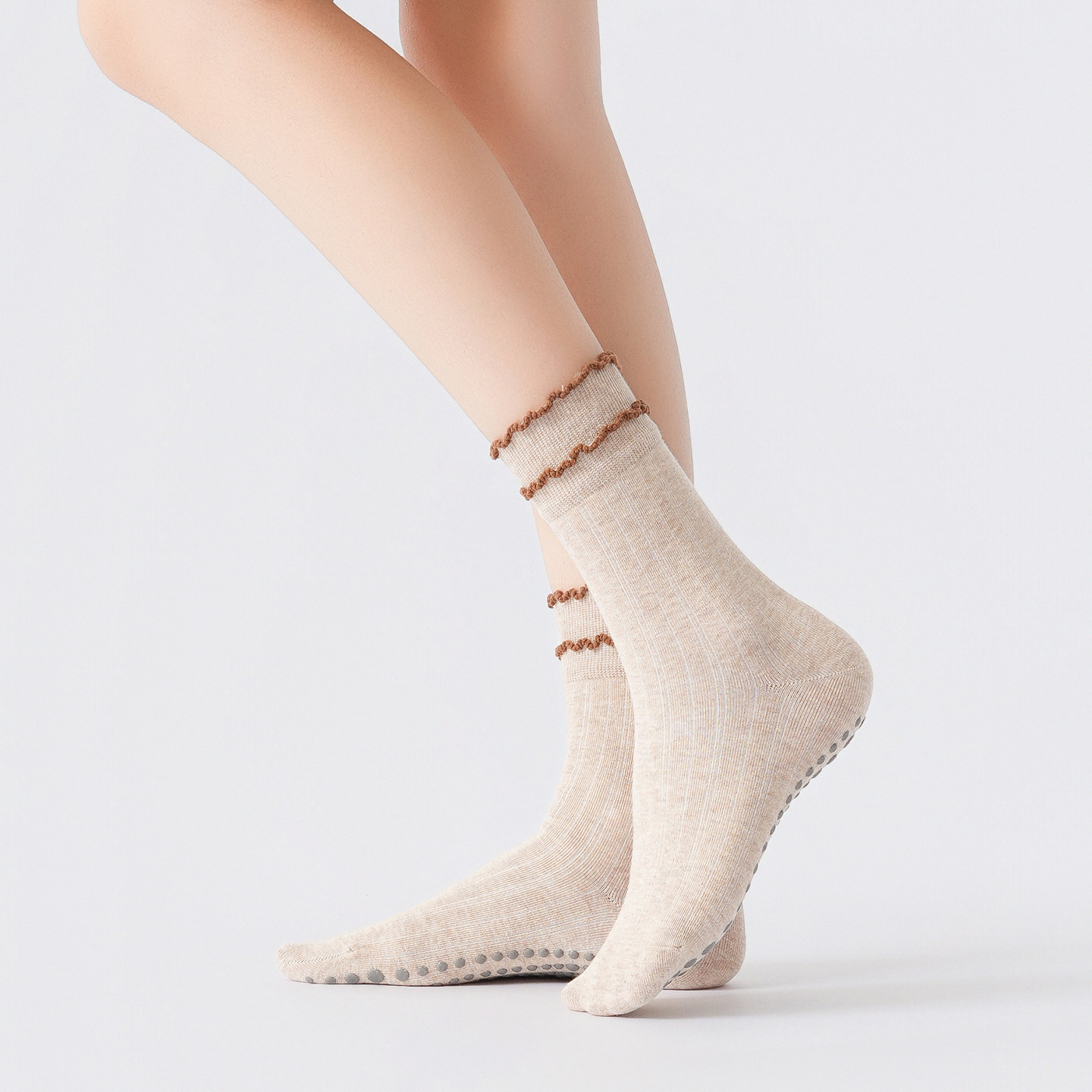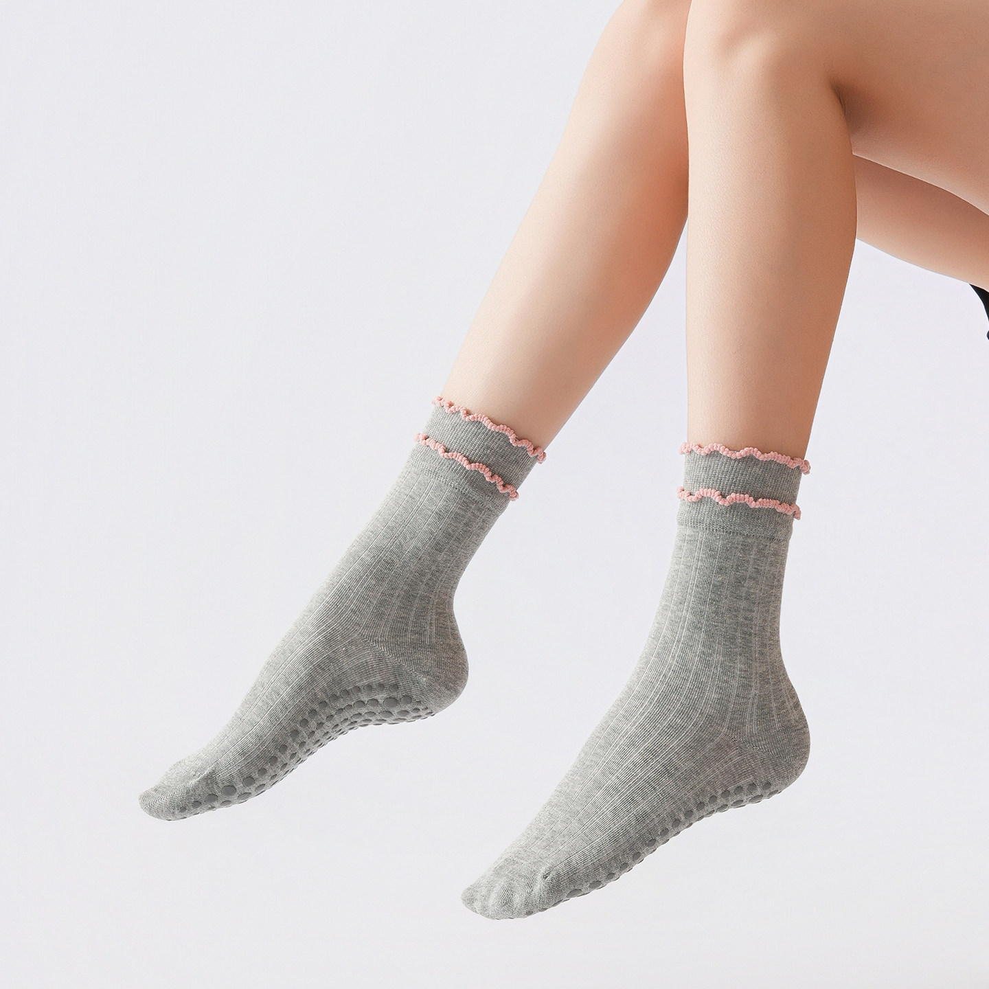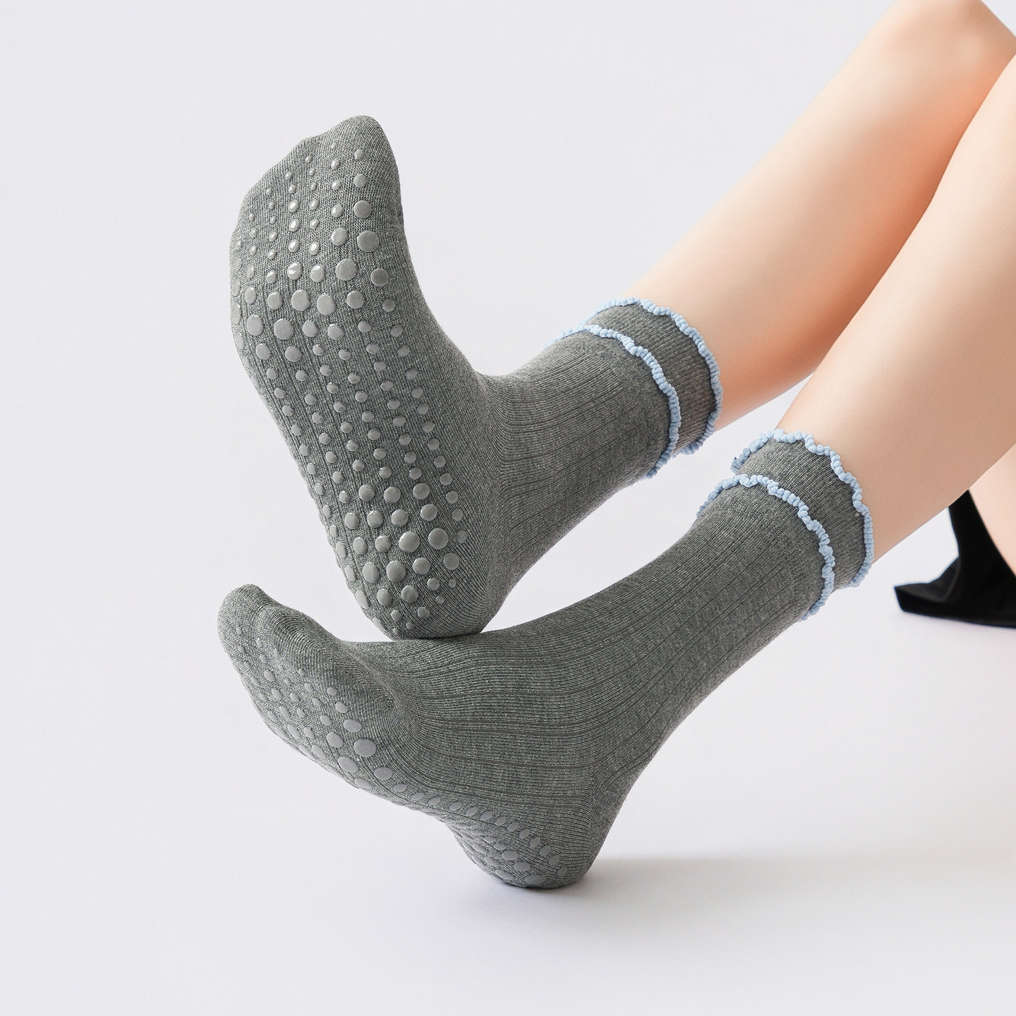 Ideal for customers searching for women’s yoga socks, lace fitness socks, non-slip pilates socks, autumn winter indoor sports socks, mid-calf workout socks, and floor exercise socks, this style emphasizes seasonal comfort, grip support, and subtle design—making it a reliable option for cooler-weather activewear sock collections.